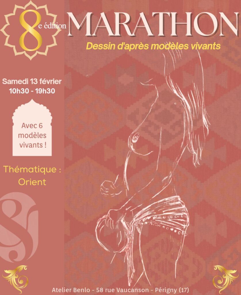 Samedi 28 Février 202610h – 19h30 Pour ce huitième Marathon de modèles vivants à La Rochelle, nous retrouverons avec plaisir l’Atelier Benlo à Périgny.Pour renouveler